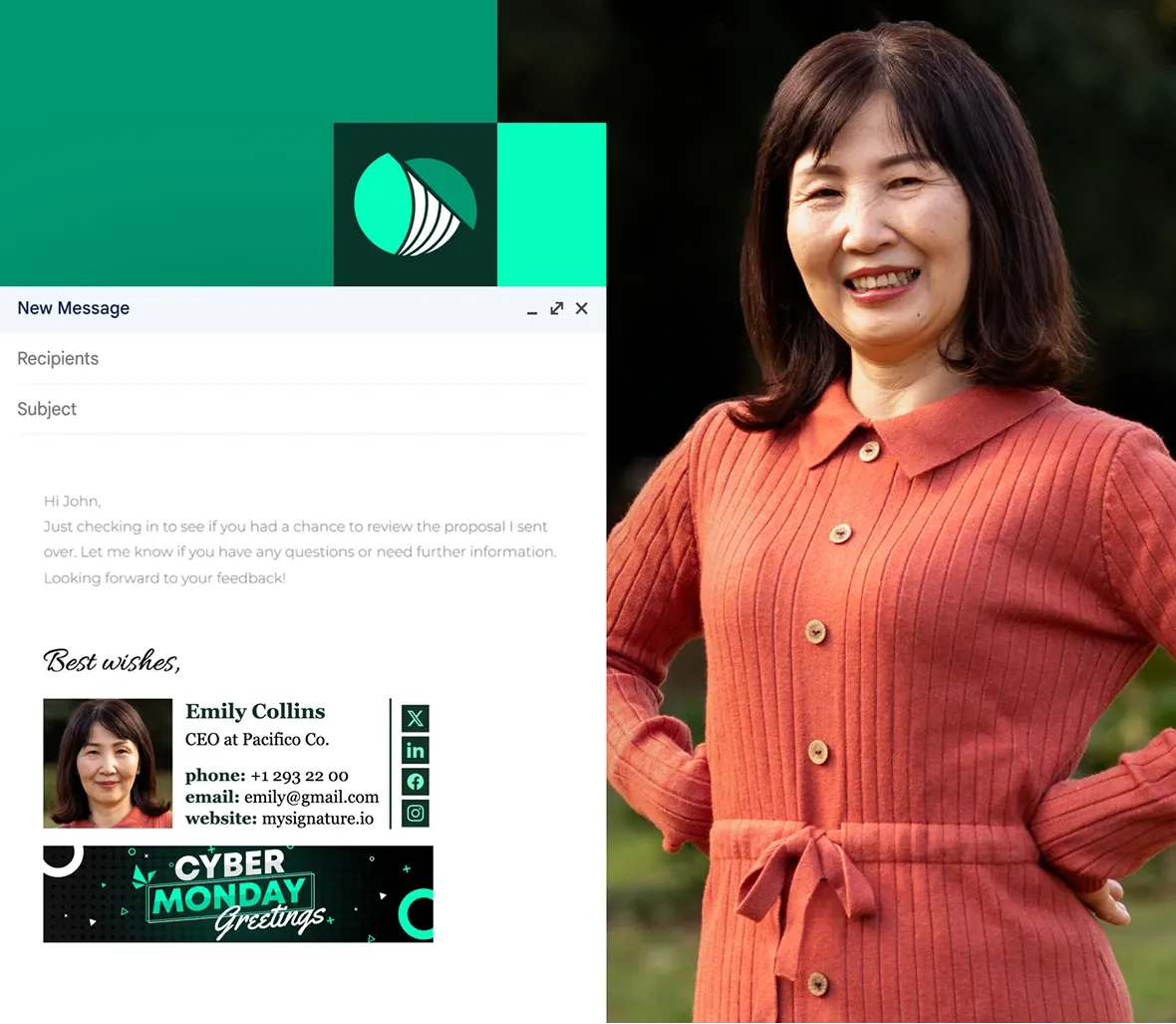 Don’t forget to update your email signature after Cyber Monday with banners for Christmas, New Year, Valentine’s Day, Easter, and more.