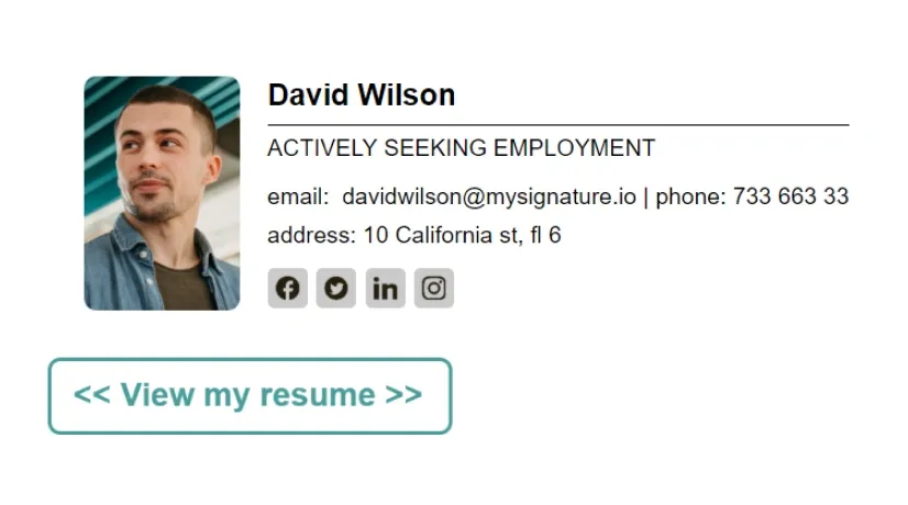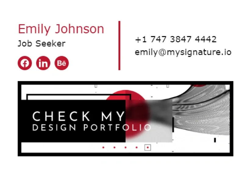 Los mejores ejemplos de firmas de correo electrónico para buscadores de empleo suelen incluir un llamado a la acción claro con un enlace al portafolio o currículum del candidato, para animar a los posibles empleadores a revisar más de cerca lo que pueden aportar.