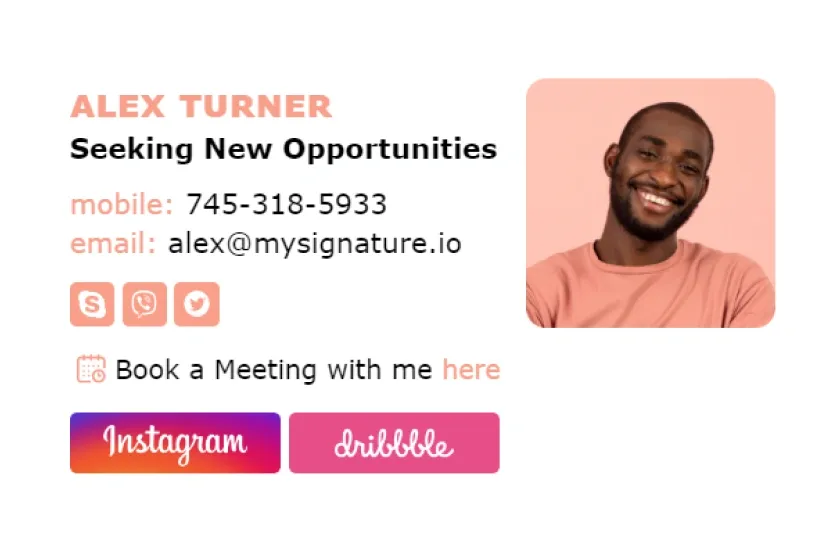 Esto facilita la vida del reclutador, ya que puede revisar rápidamente tus credenciales incluso antes de descargar tu currículum o portafolio. Usa perfiles específicos de tu sector. Por ejemplo, si eres fotógrafo, probablemente quieras incluir tu Instagram. El generador de firmas de correo electrónico MySignature te permite personalizar tu firma con íconos de redes sociales del tamaño, forma y color adecuados.